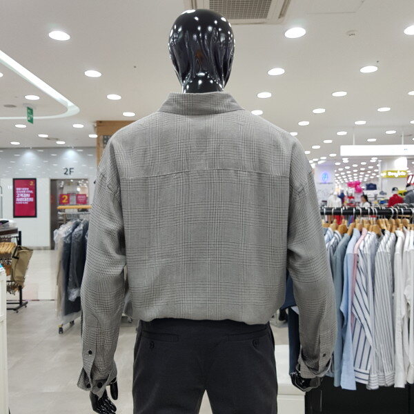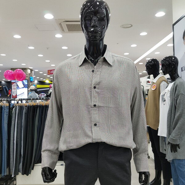 남성 오버 기본카라 레이온 체크 셔츠