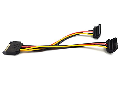 Splitter sata cable powers two Serial ATA HDD, SSD, optical drives, DVD burners, and PCI cards to a single connection on a computer power supply
