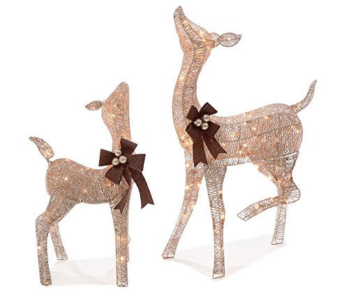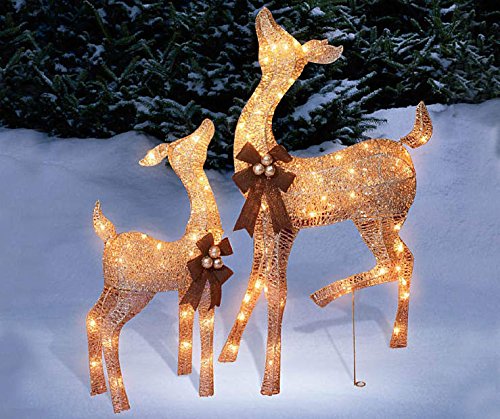 - Pre-lit Glittering Champagne 38 Inch Doe and 28 Inch Fawn