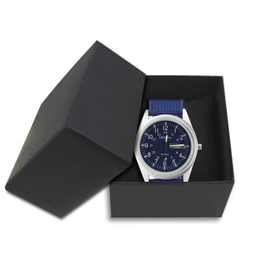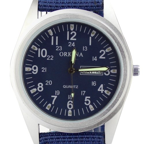 -. Title : KTC Navy Blue Dial Matt Silver Case Quartz Date Display Nylon Fabric Strap Casual Fashion Wrist Watch