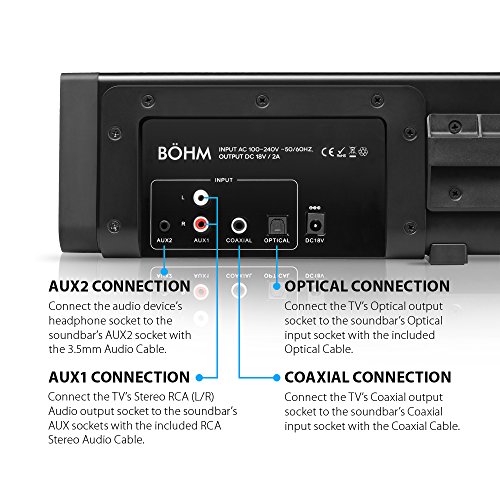 FLEXIBLE CONNECTIVITY OPTIONS Include, Bluetooth, Optical, Coaxial, & Auxiliary for Maximum TV Model Compatibility