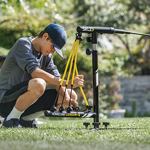 ADJUSTABLE TRAINING TOOL. Adjust resistance and pitch height with the SKLZ Hurricane Category 4. The height adjusts from 29”-43”, imitating high and low pitches. Meanwhile, the power bands allow adjust your speed from 1-4, making it ideal for any ball player.