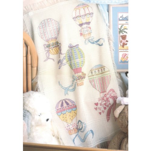 M C G Textiles 18 Count Hot Air Balloons Baby Afghan Counted Cross Stitch Kit, 29 by 45-Inch