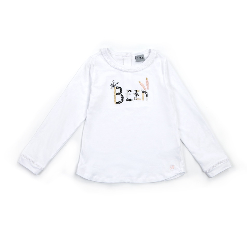 클린한 화이트 컬러의 여아 티셔츠입니다.