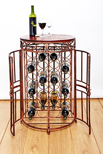 - Accommodates 24 wine bottles. The top surface area can be used for other barware.