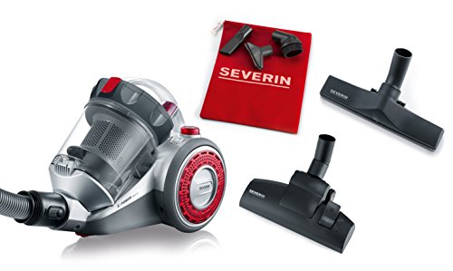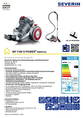 -. Title : Severin MY 7105 Beutelloser Bodenstaubsauger S-Power nonstop, circa 800 W, Inhalt 1 L, polarsilber / granatrot
