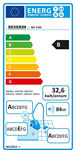 -. Feature : Energieeffizienzklasse (von A bis G): B / Durchschnittlicher jährlicher Energieverbrauch (kWh/Jahr): 32.6 / Teppichreinigungsklasse (von A bis G): E / Hartbodenreinigungsklasse (von A bis G): A / Staubemissionsklasse (von A bis G): A / Schallleistungspegel (in dB): 84 / 81 cm langes easytouch-Teleskoprohr, 180 cm XL-Premiumsaugschlauch / Ergo-Soft-Griff XL mit Klick-Verbindung / Konstante Saugleistung durch fortschrittliche Multi-Cyclone-Technologie, besonders kompakt, wendig und kraftvoll inkl. Hygiene-Dauerfilter / Umschaltbare Wessel-Eco-Bodendüse mit Rollen / Zusätzliche XL-Parkettdüse / Beutelloser Bodenstaubsauger, keine zusätzlichen Kosten für Beutel oder Filter / SensitivePOWER-System (Constant Multicyclone, Hepa 13 Filtermedia)