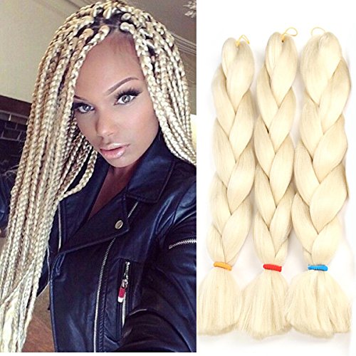 Jumbo Braids Colorful Synthetic Kanekalon Hair Extensions for DIY Crochet Box Braiding Blond 3Pcs 100g/Pcs 24Inches