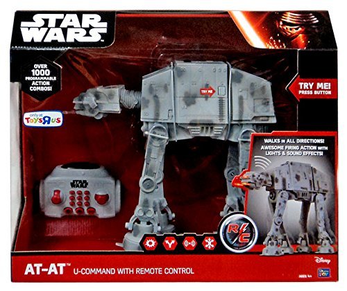 Control one of the Galactic Empire's most formidable vehicles with the Star Wars AT-AT U-COMMAND with Remote Control. The fully functional AT-AT walks forward, backward, left and right at your command. You can pre-program the AT-AT with over 1,000 action combinations using the 10 buttons on the dual-joystick, infrared controller. The 10.5"-tall AT-AT features authentic details, like a turning head, lights, sounds and a firing action.
