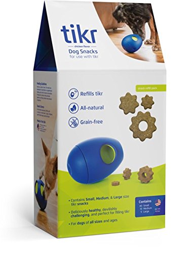 -. Feature : The snack 3 pack has resalable packs of small, medium and large snacks, for the full tikor experience / Sized to match tikor's three different hole sizes, not dog size / Snacks fall out at different times during play, which means long-lasting and engaging fun / All-natural, grain-free recipe features hearty chicken as the first ingredient / Made in the USA