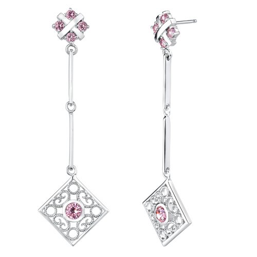 -. Title : Round Shape Pink Cubic Zirconia Pendant Earrings Set in Sterling Silver Rhodium Nickel Finish