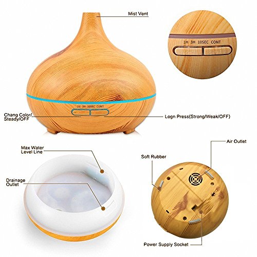 Essential Oil Diffuser 2017 Model Aroma Humidifier 14 Color Shades, Best Wood Grain, Ultrasonic Whisper Quiet Cool Mist Aromatherapy
