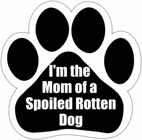 "I'm The Mom Of A Spoiled Rotten Dog" Car Magnet With Unique Paw Shaped Design Measures 5.2 by 5.2 Inches Covered In UV Gloss For Weather Protection