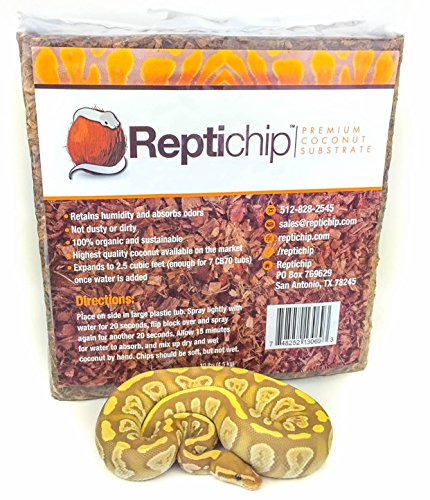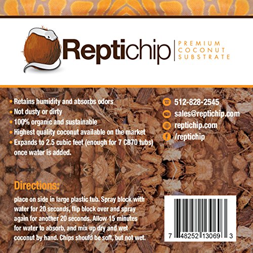 Reptichip Premium Coconut Substrate 72 quarts of natural, organic reptile bedding. This reptile substrate is easy to clean and allows for reptile hide. The highest quality coconut substrate available!