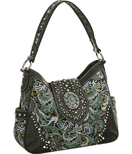 -. Title : Montana West Paisley Hobo Shoulder Bag With Crocodile-Stamped Trim