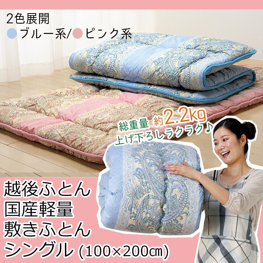 fk094igrjs総重量が約2.2kgなのでふとんの上げ下ろしもラクラク!! 製造国:日本 素材・材質:側地:ポリエステル65%・綿35%(203本打込)詰物:ポリエステル100%(1.5kg) 商品サイズ:約100×200cm 重量:約2200g※お届け地域により、別途運賃がかかる場合やお届けできない場合がございますので、お問い合わせ下さい。