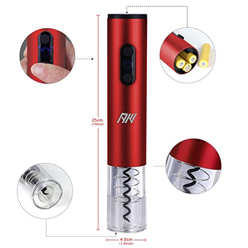 Specification: 1. Compatible with rechargeable battery and alkaline battery. 2. Opening wine in 6-8 seconds, can open over 80 bottles continually for full charged batteries. 3. Voltage rating:? a. Alkaline batteries: DC 6V(4pcs Alkaline batteries) b. Rechargeable type: DC 4.8V-250mA(4pcs AA 700mmA Nickle cadmium batteries) 4. Size: 25.2X4.5CM (9.9x 1.8 inch) 5. Weight: 300g (not including batteries)