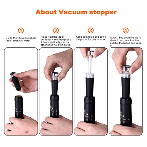 Package Includes 1 X Electric wine opener 1 x Vacuum stopper 1 X Foil cut 1 x Pourer