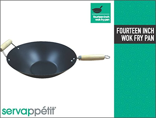 This 14" carbon steel wok by Servappetit is perfect for in home cooking. Classic non-stick design and wide basin for even heating of your favorite meals. Excellent for everyday, special occasions and wedding gifts.Feature
