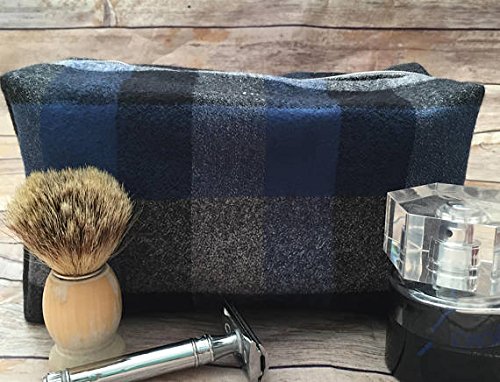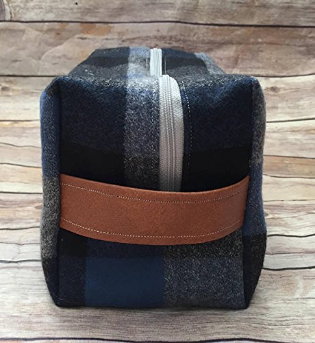 Mens Blue and Gray Plaid Toiletry Bag