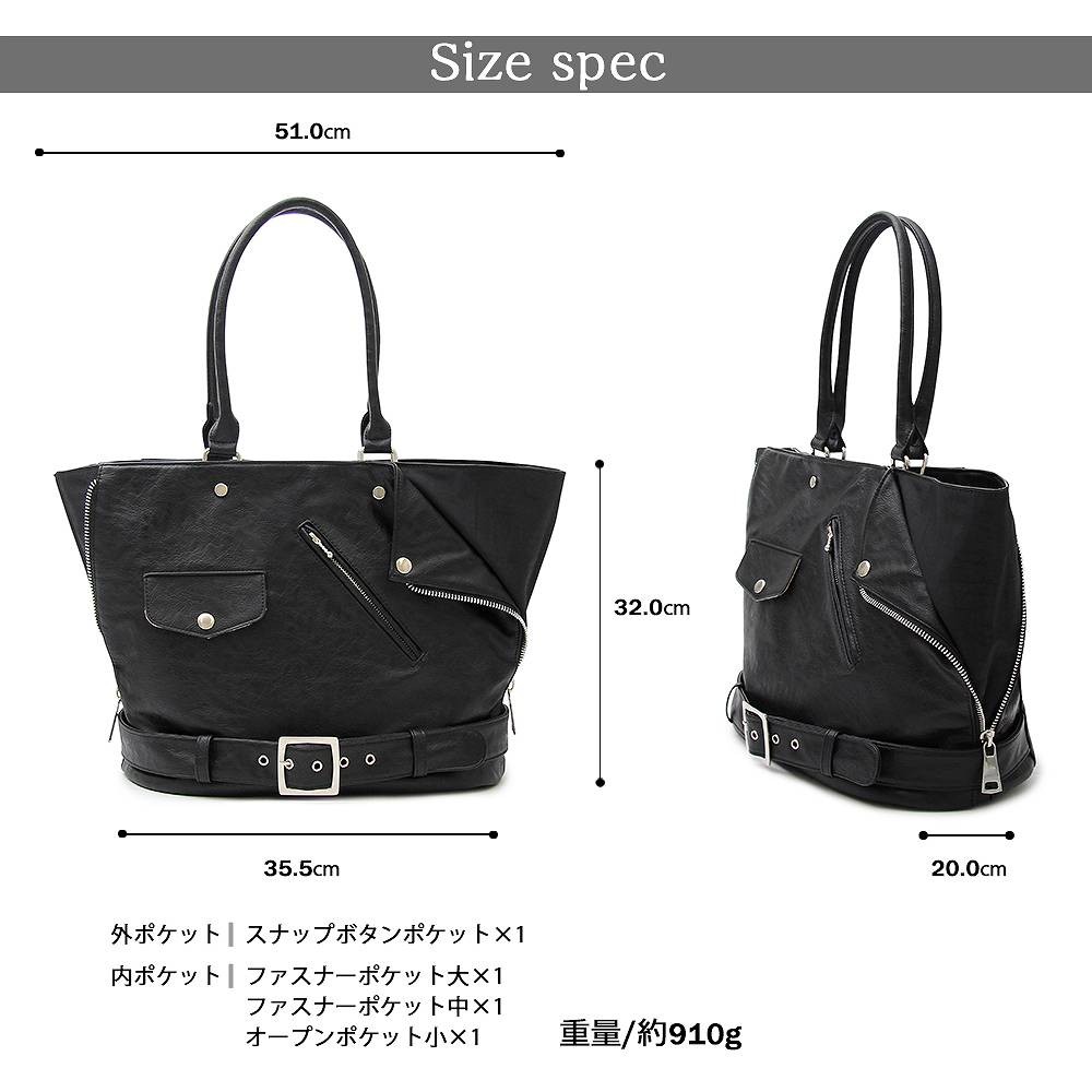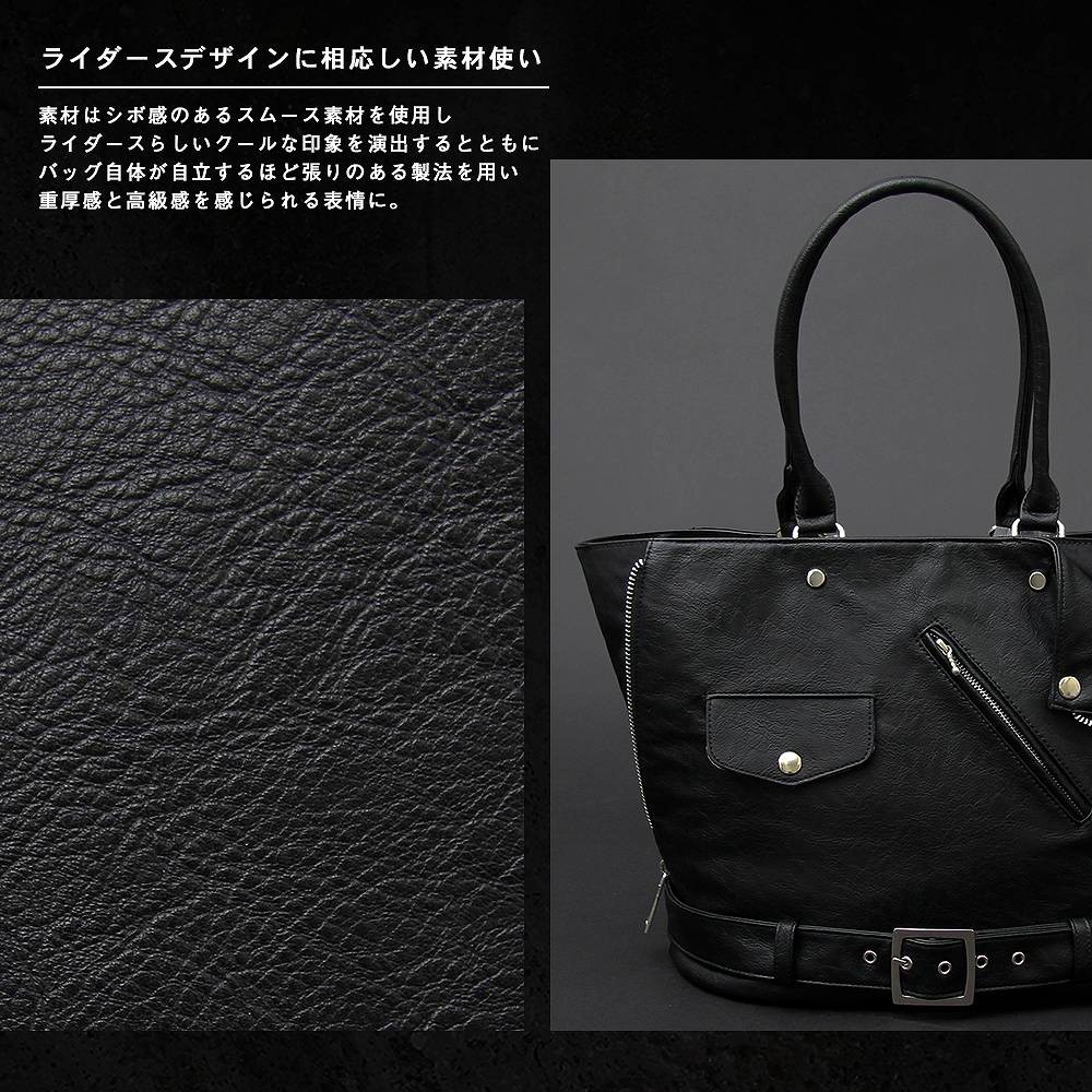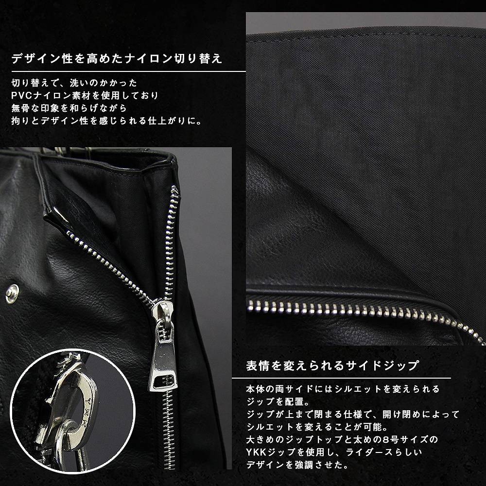 | 商品名 | トートバッグ メンズバッグ ユニセックス ライダース型 変形 ライダースジャケット 男女兼用 A4 バッグ ロック ヴィジュアル系 モード 大容量 |