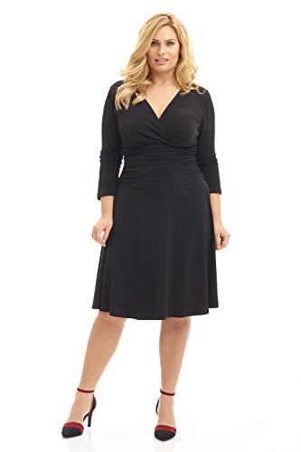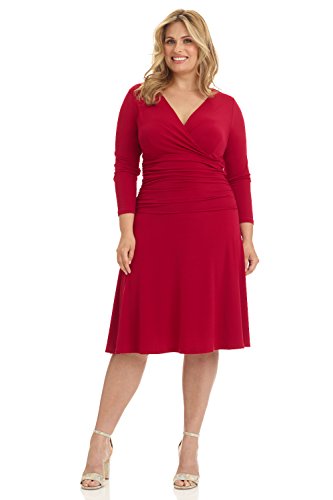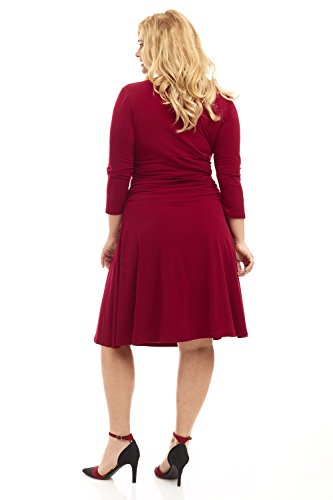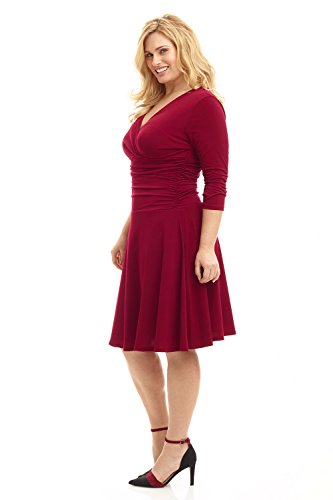 FLATTERING: Surplice crossover neckline elongates your look while still being modest. Wide ruched waist and flared skirt enhance and give an hourglass figure. Knee length skirt is classic and chic.