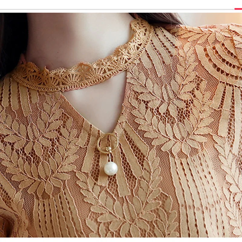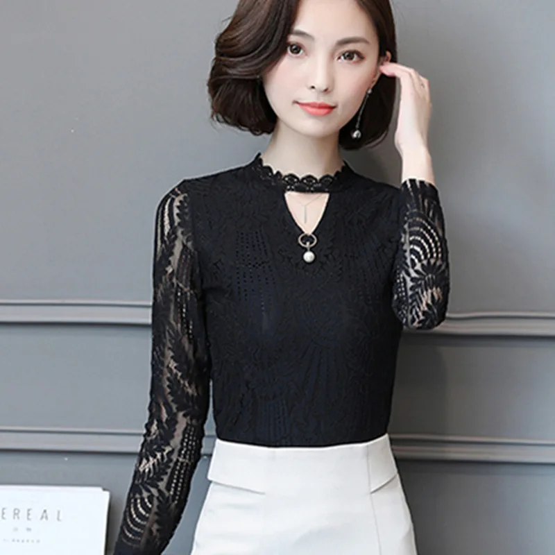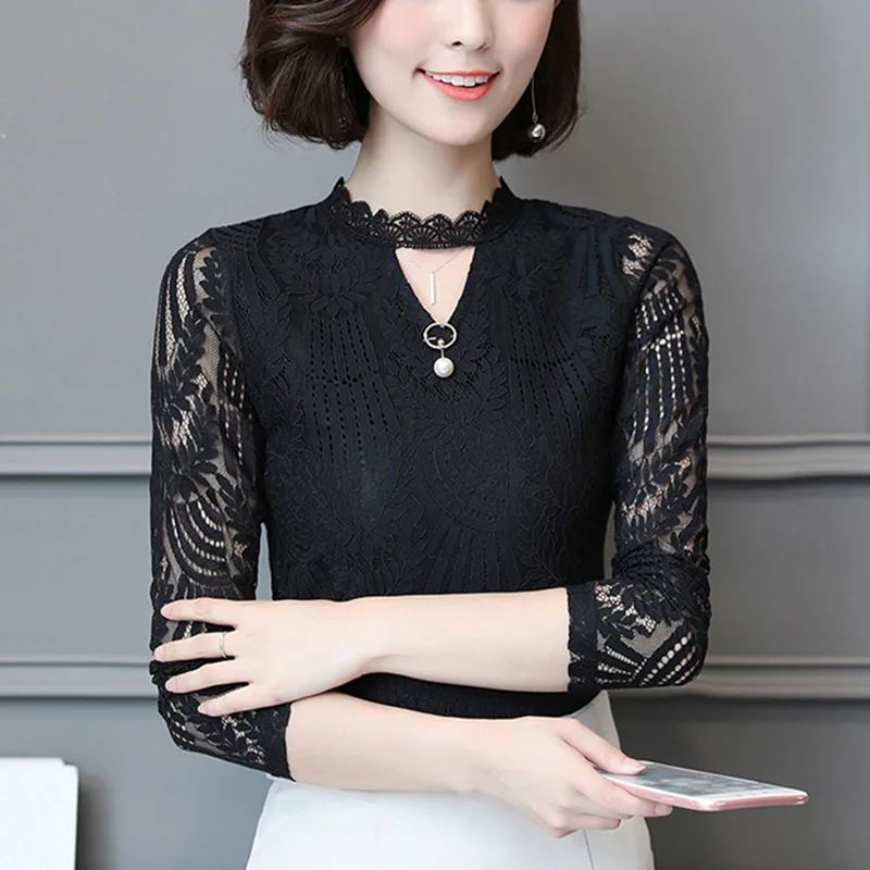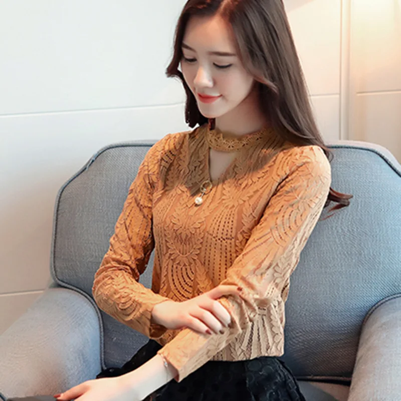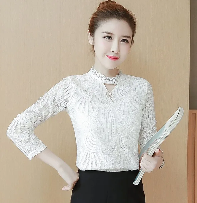 Women Tops Detail Design: V-Neck Collar Long Sleeve Women Shirt blusa com renda Chiffon Hollow