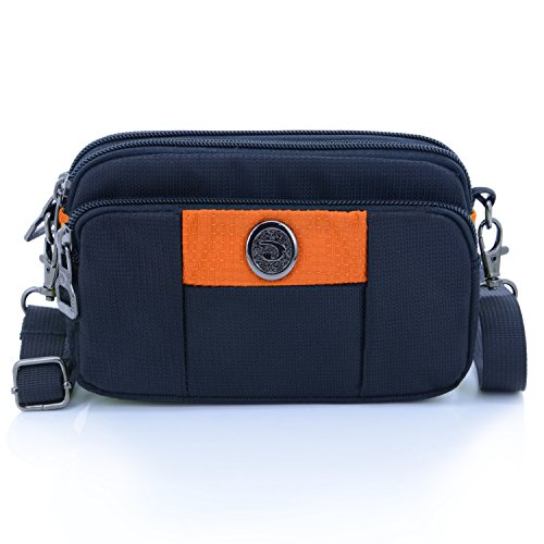 SLIM,LIGHTWEIGHT AND WATER RISESTANT. - With an slim and lightweight multi-pockets construction,the horizontal phone pouch is comfortable to wear both as a waist pack and as a small shoulder purse,the high-quality material is durable and wear-resistant.