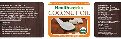 -. Title : Healthworks Coconut Oil 16oz, Organic Extra Virgin
