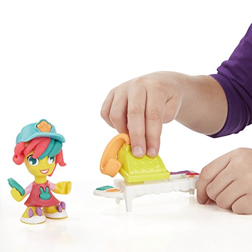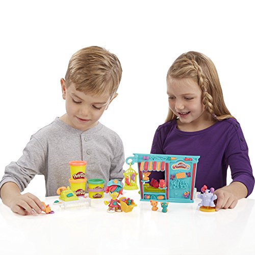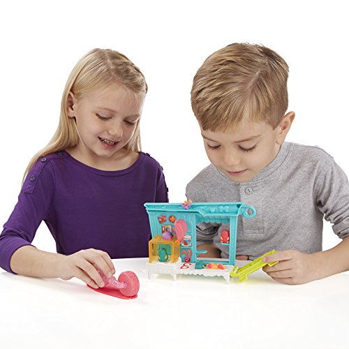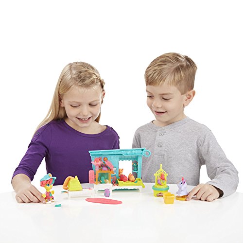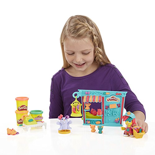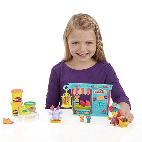 Make all kinds of friends at the Play-Doh Town Pet Store! Help this animal-loving storeowner fill the shop with cute and colorful creatures. Get her ready for work by creating fun hairstyles, decorating her outfit, and pressing out bunny slippers. When she's ready for the day, press out colorful ears for her bunny. Create lots of other pet friends by shaping some hamsters with the book-mold, making colorful fish in the fishbowl, and more. Roll the detachable hamster wheel to stamp cute little footprints. Don't forget to make some pretend treats for all of the adorable Play-Doh animals! To keep business hopping along, shape some money using the half-molds and press out receipts using the cash register. With a little imagination, kids can always create new friends and new adventures in Play-Doh Town! Hasbro, Play-Doh and all related properties are trademarks of Hasbro.Feature
