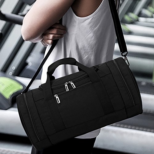 -. Title : Forestfish Black Unisex Gym Duffel Bag Sports Duffle Bag with Shoe Compartment