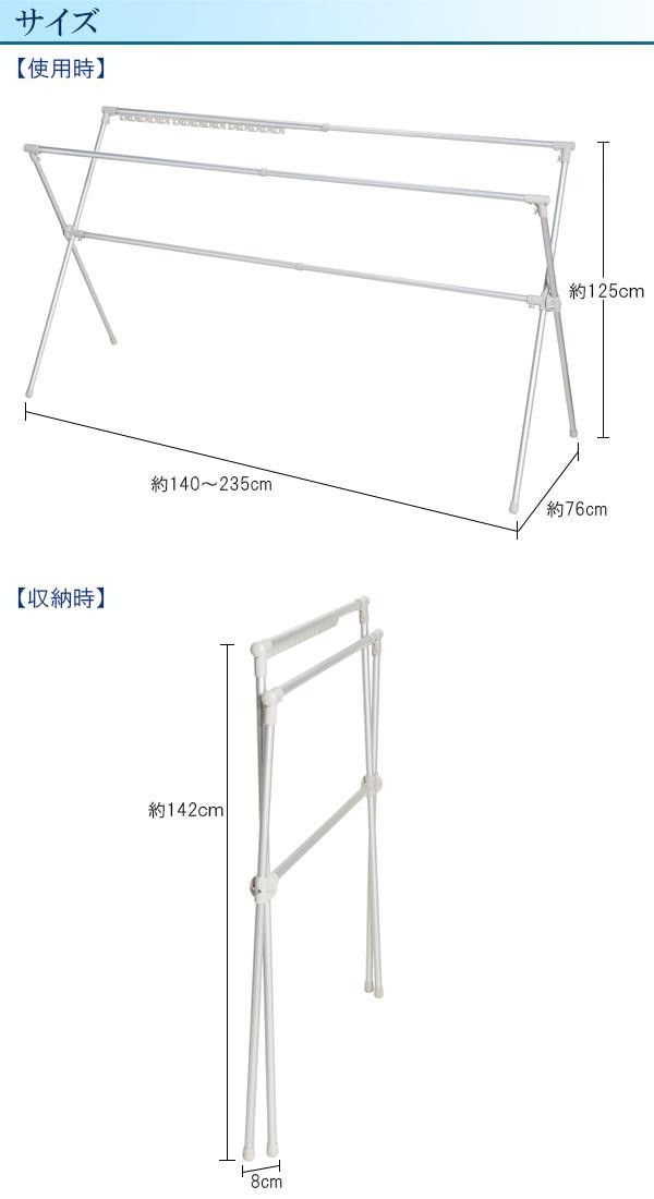 | サイズ | 使用時:(約)高さ125×幅140~235×奥行76cm、収納時:(約)高さ142×幅140×奥行8cm 個装サイズ:138×23×11cm |