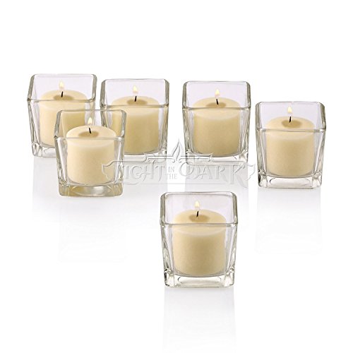 Studio : Light In The Dark Publisher : Light In The Dark Binding : Kitchen Product Description Our Set of 72 Square Clear Votive Candle Holders With Votive Candles, Size : 2 " Tall X 2 " Wide , are the highest quality votive candle holders you'll find anywhere! The walls of the glass are nearly thick. With proper care, these votive candle holders should last a lifetime. These small votive candle holders holders come in handy for so many situations. Use them on table tops, hallways or gardens. They make excellent party favors. Tip: A half teaspoon of water in the votive candle holder will make it easy to remove any remaining wax once the votive candle has burned out and cooled {Votive candle Included } Size : 2 " Tall X 2 " Wide 0