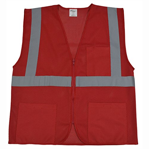 Petra Roc RVM-S1-L/XL 3 Pockets Zipper Front Riggings Safety Vest, Large/X-Large, Red Mesh