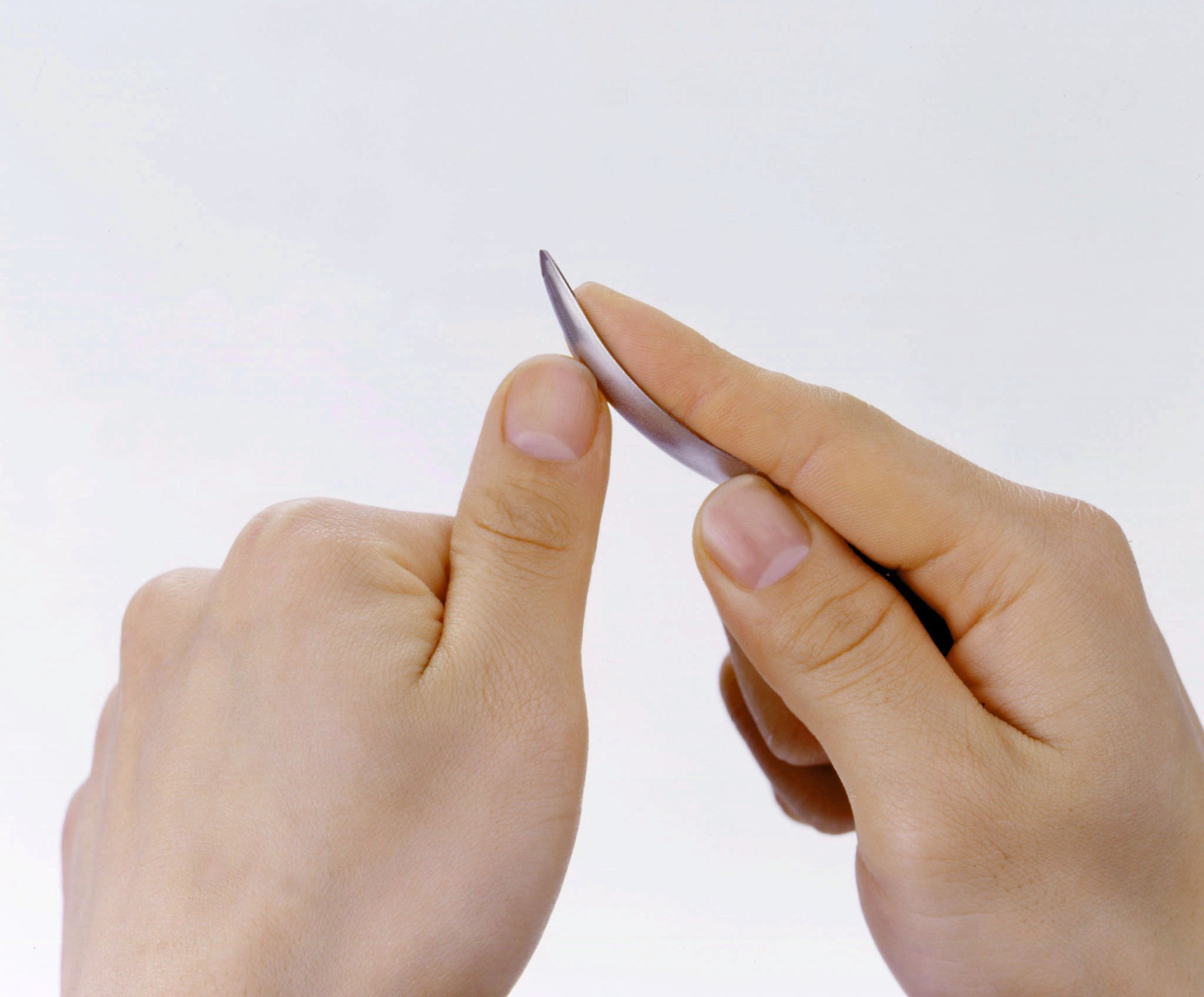 This file has a function to release burden on the nail to the outside by applying "sanding file" on the outside surface along the curve, so there is less catching of the nail and less pain.