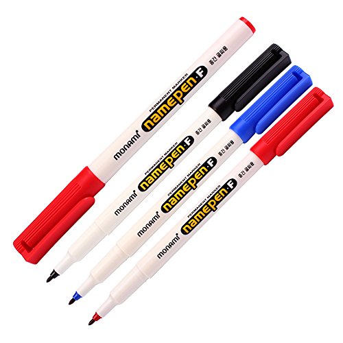 -. Title : Monami Name Pen F/medium Point Permanent Marker Red,blue,black Mixed (Pack of 12 Markers)