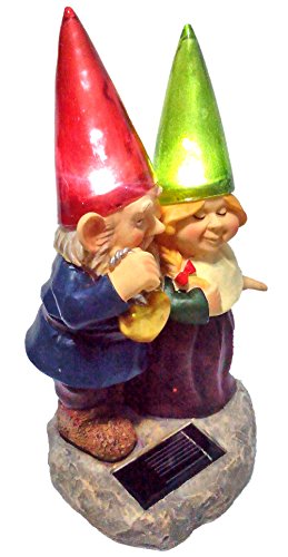 Loving Couple Garden Gnome holding hearts and flower Garden Solar Light