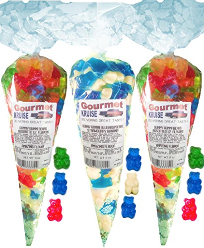 -. Title : Gummy Bears (2) Assorted 12 Flavor Mix (1) Blue Raspberry White Strawberry Banana Gummi (NET WT 33 OZ) Gourmet Kruise Signature Gift Bags