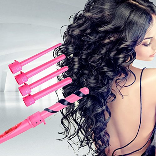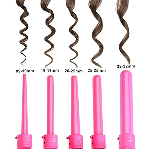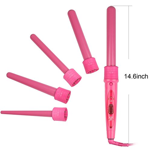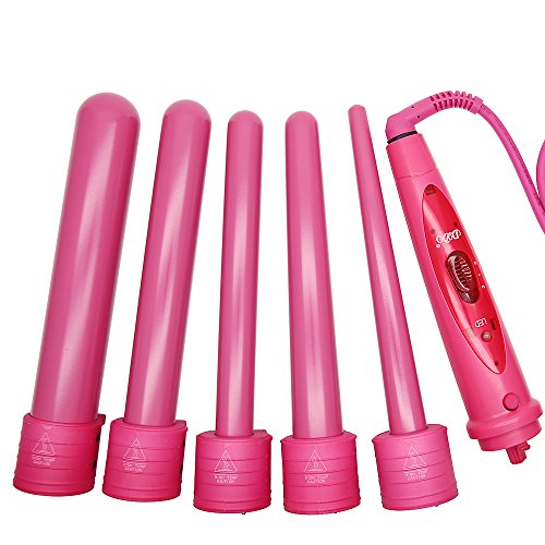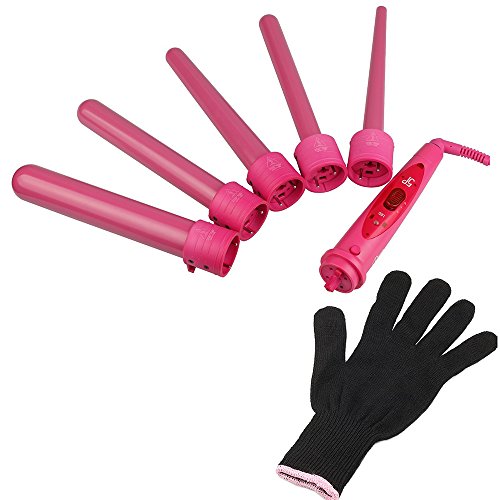 Cosprof 5 in 1 Curling Iron Set with 5 Interchangeable Curling Wand Ceramic Barrels and a Heat Protective Glove,for Long or Short Hair (Pink)