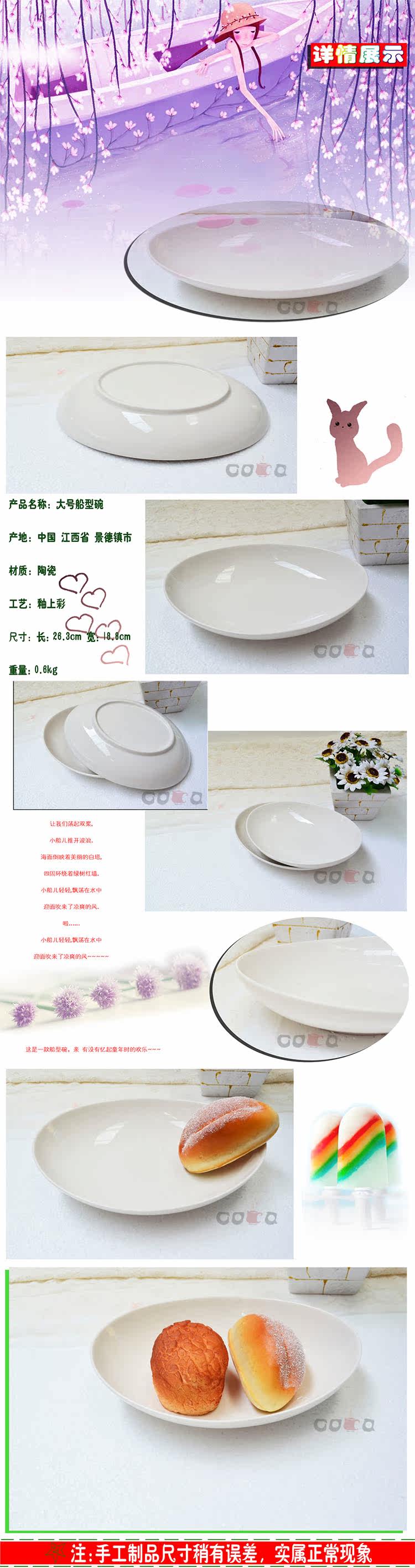 大号船型盘 月亮船陶瓷特色创意餐具纯白酒店用瓷异形盘