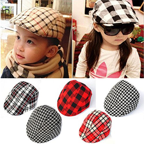-. Feature : Babys Girls Boys Classic Plaid Peaked Cap Baseball Hat Beret Cap (Black White) / package : 1 PC