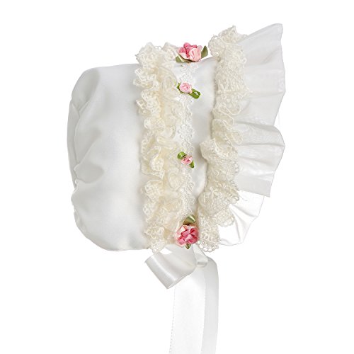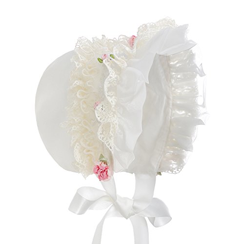 Binding : Apparel Product Description A bonnet is any of a wide variety of headgear for both sexes-most often female-from the Middle Ages to the present.As worn by women and girls,bonnets were hats worn outdoors which were secured by tying under the chin, and often which had some kind of peak or visor,took the place of protection from sun,prevent wind-chapping,hold the hair in place, protect styled hair or keep it tidy,the term has long been popular in both civilian life and in the Royal Regiment . Baby Bonnets are a time old tradition that carries into present day because of their elegance and functionality. They're offered in small to large sizes then tie at the chin with two silk ribbons for a more secure and comfortable fit. Carry the tradition in your family with a bonnet from Hanakimi you can't find anywhere else. For parties and photos, choose from baby girl bonnets for the perfect accessory to accent wisps and curls. Lace, netting, beads and bows add just the right touch to these handmade bonnets. XXS/Newborn Fit for 0-3 Months, XS/3M Fit for 3-6 Months, S/6M Fit for 6-12 Months, M/12M Fit for 12-24 Months, L/24M Fit for 24-36 Months, XL/36M Fit for 36-48 Months. 0