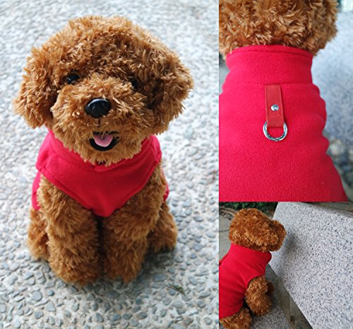 -. Feature : 4 sizes available:Small Size (Length of back:9.8", Neck circumference:11.4", Chest circumference:13"); Medium Size (Length of back:11.4", Neck circumference:13.7", Chest circumference:15.3"); Large Size (Length of back:13.3", Neck circumference:16.1", Chest circumference:18.5"); Extra Large Size (Length of back:15.7", Neck circumference:18.5", Chest circumference:20.8"). / Comfortable and warm--keep warm, especially keeps the hair less dog feel warm during the cold season. Fabric soft to touch, will not hurt dog's skin. / Sturdy and durable--the back of jacket with a O ring which is attached for dog leash and is very convenient, as you do not have to deal with a dog harness or collar underneath. / There have 4 sizes available which can satisfied different size of dogs, like Chihuahua, Yorkie, French bulldog, Corgi, Schnauzer, Golden Retriever,Boston Terrier and so on. / Note: should compare with size chart before order the jacket, in order to buy most suitable one for your lovely dog.
