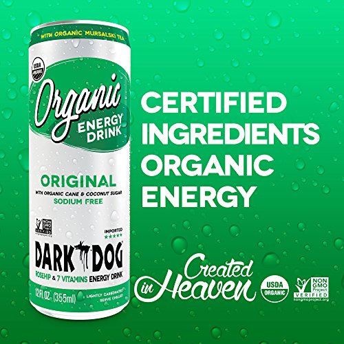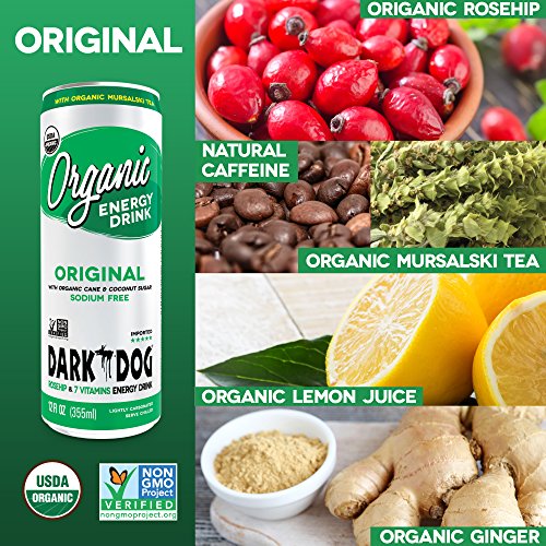 DARK DOG ORGANIC ENERGY DRINK, USDA ORGANIC AND NON-GMO VERIFIED ENERGY DRINK, 12OZ (PACK OF 12)