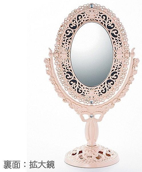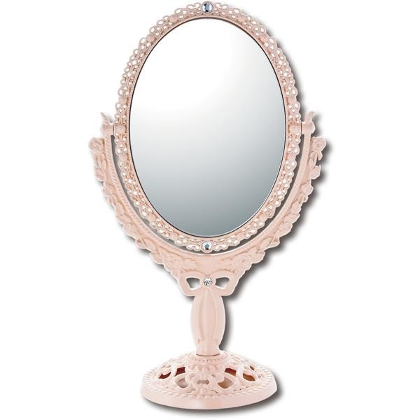 | 細かい模様使いで全体をデコラティブに仕上げたオーバルタイプのスタンドミラー。持ち運びに便利な安定感あるスタンドデザインは、心地良い使用感を生みます。表裏両面使えるリバーシブル仕様で、一方は拡大鏡になっています。ミラーを好みの角度に変えれて、使い勝手抜群!! |