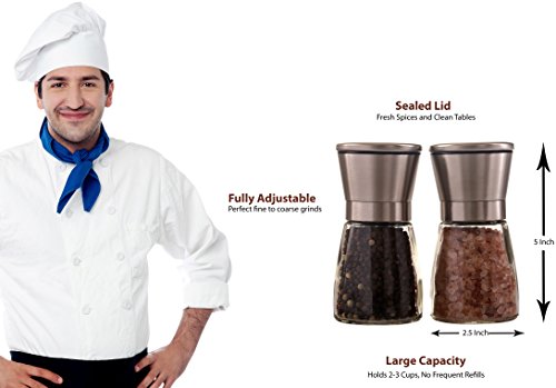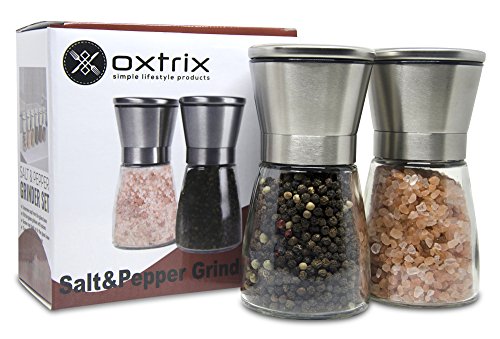 Oxtrix Stainless Steel Salt and Pepper Grinder Set, Adjustable Ceramic Rotor and Adjustable Coarseness
