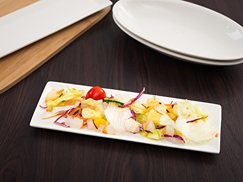 Our Rectangular Porcelain Serving Platters never go out of style Whether you are throwing a party for your children or having friends and family over for dinner: our porcelain serving plates are perfect for any occasion and will give your table decor that certain something. Add some elegance to the evening and don’t worry about doing the dishes: our durable porcelain serving platters are dishwasher safe - for people who like to spend their time with their loved ones instead of the dishes. Quick facts about our Rectangular Porcelain Serving Platters: - Set of four white rectangular platters/plates