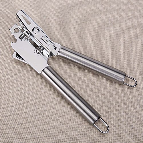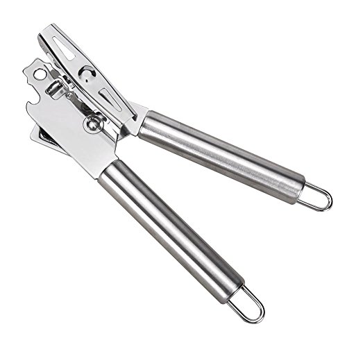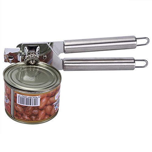 Manual can opener locks onto cans of all sizes for safe and efficient opening,Smooth turning, stainless-steel cutting mechanism opens cans in seconds.