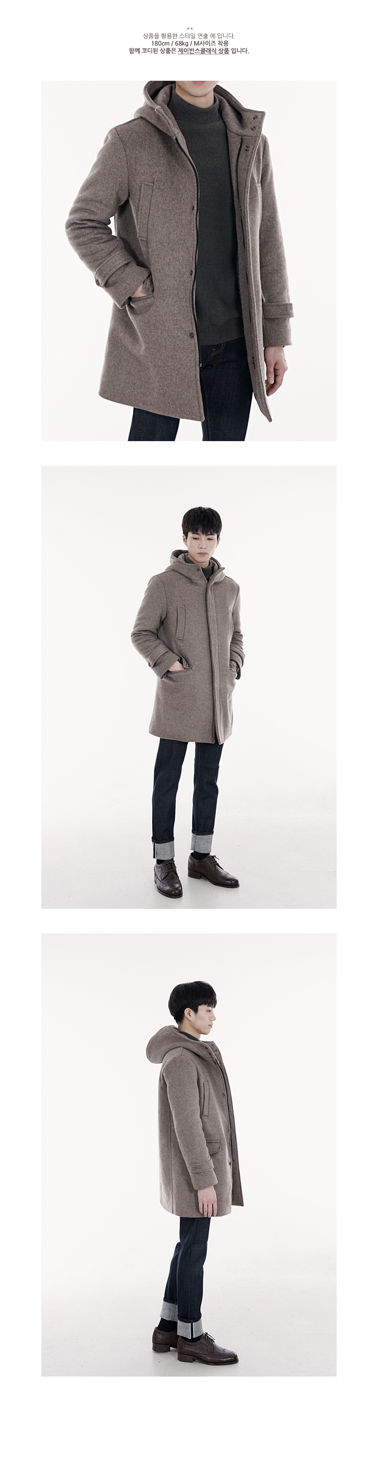 편안한 핏과 착용감의 후드코트로 터틀넥이나 니트와 함께 코디하면 잘 어울립니다.