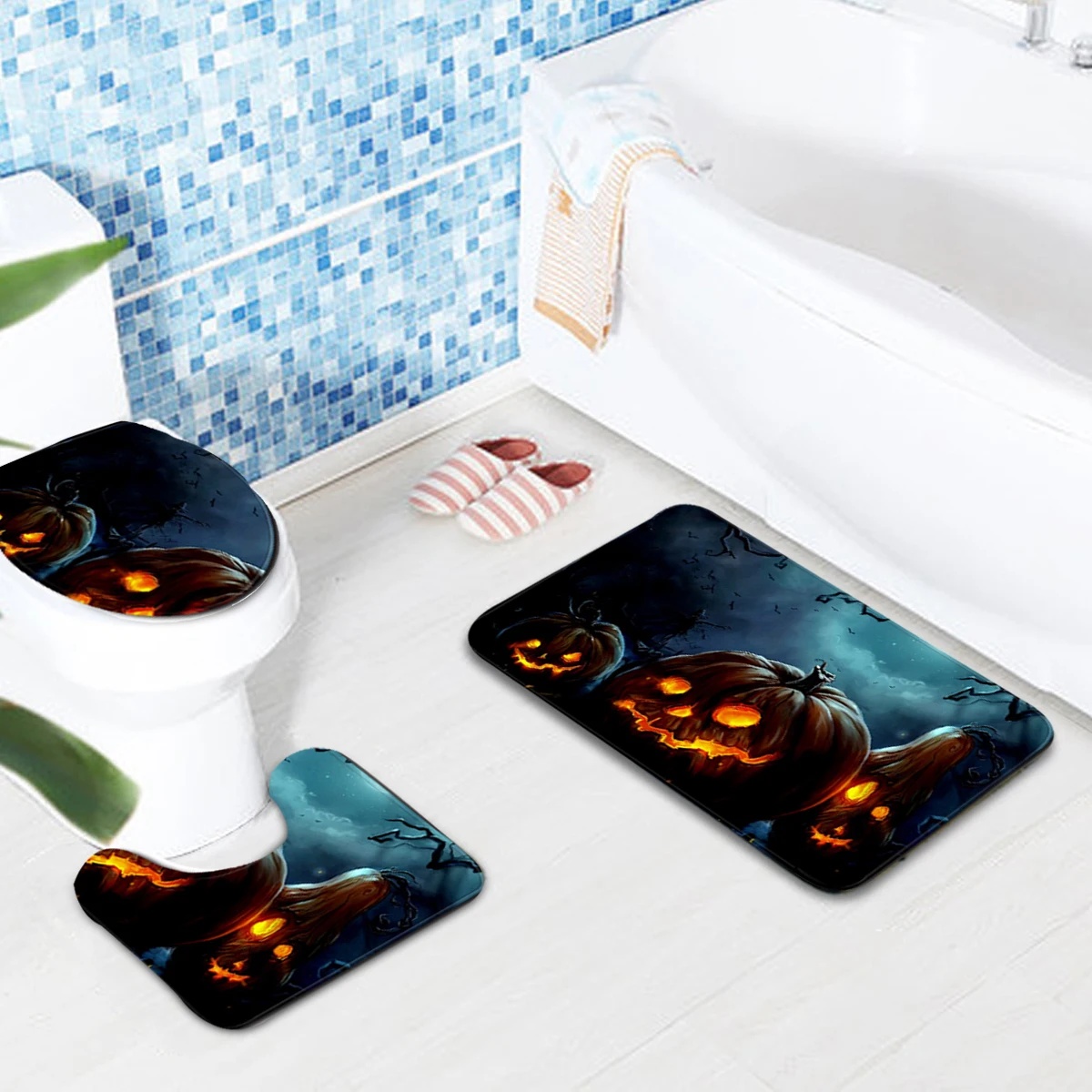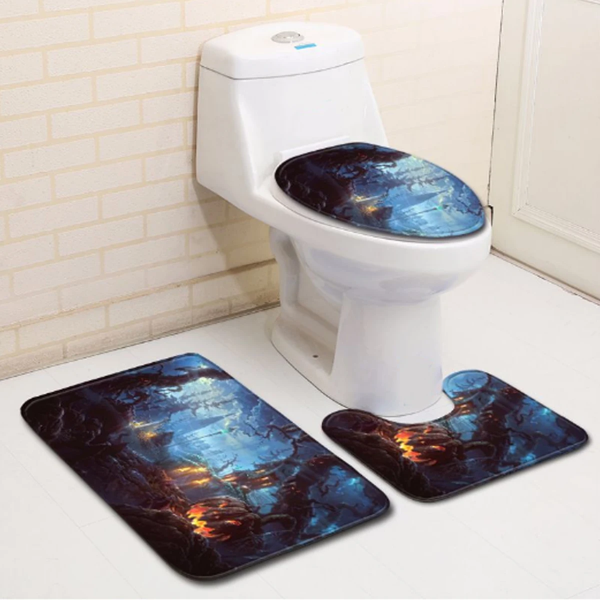 3x Mat(Pedestal toilet seat mat + Lid + Bath Mat )